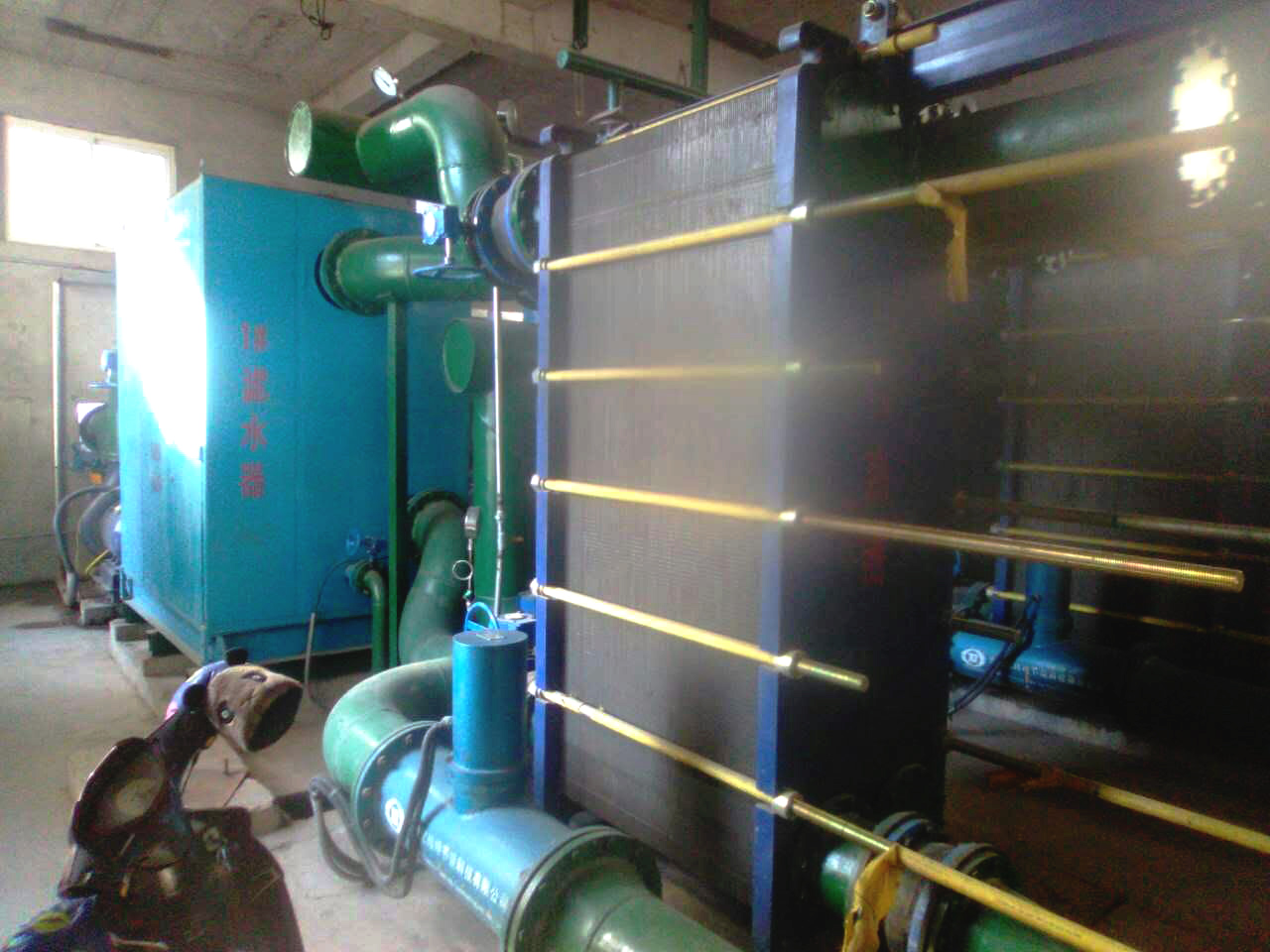 凌鋼5#高爐沖渣水換熱站始建于2012年10月,原有渣水過濾器及換熱器設(shè)備堵塞嚴(yán)重,換熱效率低,我公司應(yīng)凌鋼要求,設(shè)計(jì)優(yōu)化采暖方案,對(duì)換熱