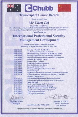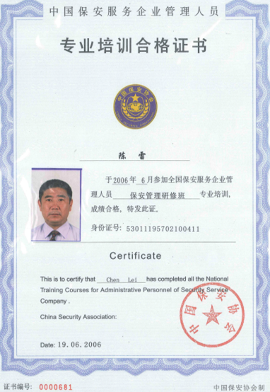 陳雷安保現(xiàn)代化管理證書管理